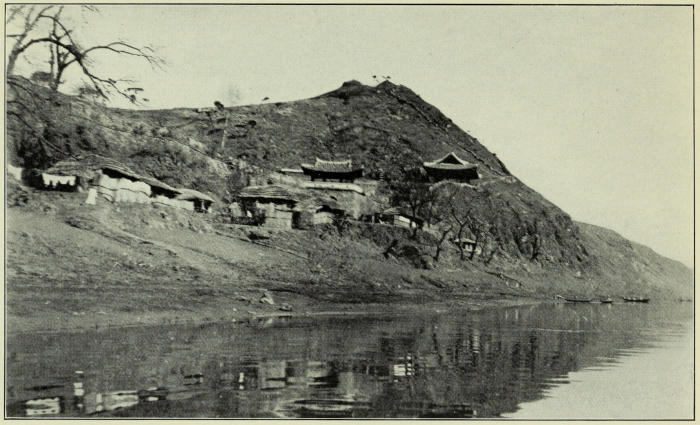 It was soon after seven on the morning of Tuesday, March 26, 1907, that we had our first sight of Chosen, “The Land of Morning Calm.” The day was superb, fully bearing out the high praise which is almost universally bestowed upon the Korean weather in Spring—the sunshine bright and genial, the air clear and stimulating like wine. Tsushima, the island which for centuries has acted as a sort of bridge between the two countries, was fading in the distance on our port stern. The wardens of Tsushima, under the Tokugawa Shogunate and, as well, much earlier, had a sort of monopoly of the trade with southern Korea. From Tsushima, several centuries ago, came the trees which make conspicuous the one thickly wooded hill in Fusan, now the only public park in the whole country. In front rose the coast; its mountains denuded of trees and rather unsightly when seen nearer at hand, but at a distance, under such a sky, strikingly beautiful for their varied richness of strong coloring. The town of Fusan, as we approached it, had a comfortable look, with its Japanese buildings, many of them obviously new, nestled about the pine-covered hill which has already been noticed as its public park.