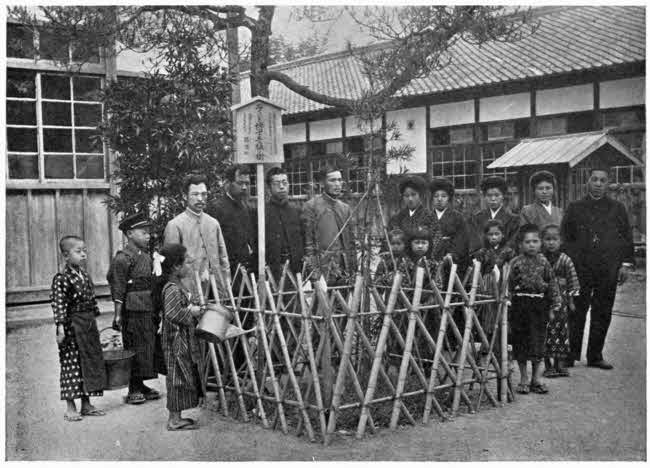I have been in more or less familiar intercourse for nearly twenty years with thousands of this class in Japan. In spite of the sincere and largely intelligent interest which both Government and people take in matters of education, the public-school teachers of the country are heavily overworked and lamentably underpaid. But the ideal of His Majesty’s celebrated Imperial Rescript is steadily held up before them—namely, that there shall be no household in the land, and no member of any household, to whom the benefits of education shall not have been supplied in liberal measure. To realise this ideal, Japan must have an entire generation or more of peace and of peaceful development.[306] At present its Normal Schools, Higher Schools (those of the so-called Koto grade), and Universities, can scarcely provide for more than one-tenth of those who are desirous of fitting themselves for advanced positions and larger influence in the service of the nation. As a result, in many of the country places the scholastic training of the teachers cannot be of a high grade. But the eagerness with which these humble men (for, unlike-the case with us, the great majority of the common-school teachers are males,—many of them in middle life and beyond) avail themselves of every opportunity to see and hear anything which may help them in their work, is both encouraging and pathetic. Where in the United States, for example, could a voluntary class of more than eight hundred teachers be held together for twenty hours of lectures on education,—each session more than filling up the period between four and six o’clock of the afternoon, during the busiest part of term-time? Yet—as I have already said—this was readily done in Kyoto, the ancient capital, in the Winter of 1907.