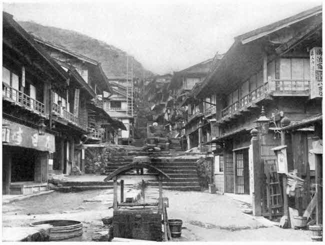 While passing through the streets of Yuasa we noticed entire blocks of houses which, sometimes on one side and sometimes on two or more sides, were railed off from the highway, at a short distance from their fronts, by a barrier of galvanised iron about two feet and a half high. At the time, this strange sight only aroused a momentary curiosity. It was not until we were about leaving Hir-omura that we learned the meaning of it all. In July of the previous Summer some boatmen from Osaka had landed in Yuasa and had brought to the villagers the dreadful bubonic plague. It had taken until the following December for the authorities to stamp out the scourge effectually. By this contrivance of an iron wall it was intended to trap the rats and prevent their carrying the infection from house to house and from street to street, before they could be killed. Aided by the barrier of the little river, although there were several hundred cases in this village, the other village, which was less than[297] a mile away, wholly escaped. In general, it is only by the most untiring and intelligent diligence, extended into all the smaller places upon the coast and into the remotest country districts, that Japan prevents the plagues which are endemic in China, India, and Korea, from ravaging her own land.