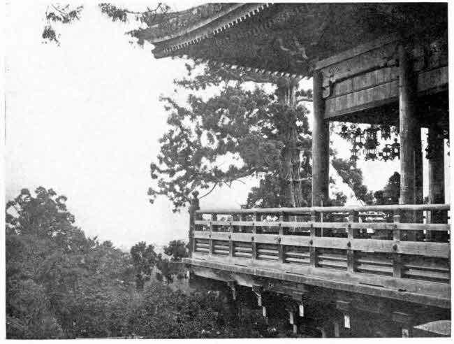 At four o’clock in the morning of the second day after my visit to the Imperial Diet in the Spring of 1892, I arrived at the station of Kyoto,—for more than a thousand years the capital of Japan. Here the unbroken line of heavenly descended Mikados lived and held their court; but most of the time in only nominal rule, while a succession of Daimyos, military captains, and Shoguns, seized and held the real power of government. Here also are the finest temples and factories for the various kinds of native art-work; and here is where the relics of the magnificence, combined with simplicity, of the court life during Japan’s feudal ages may best be seen and studied by privileged inquirers. It was fortunate, then, that my first introduction to interior views of Japanese life and Japanese character was had in the ancient rather than in the much more thoroughly modernised Capital City of Tokyo.