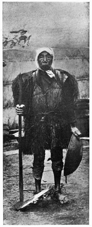 Now Waka-no-Ura, as the very name signifies, is the “coast” (Ura) for which the old feudal town, the capital of the Province of Kishu, Wakayama, is the “mountain” (Yama). It is one of the most notable for its beauty of all the sea-coasts of Japan. The picturesque features of the landscape, which have been celebrated in innumerable poems by centuries of poets and poet-asters, were all in evidence on that day. There were the storks standing on one leg in the water, or flying low above the rushes. There were the rocks and the pines—not straight, of course, like ours, but by their knarled and knotty shapes, irregularities and eccentricities of outline, provoking in the mind of the Japanese all manner of sentimental expressions and similes touching human life. There were the boats of the fishermen, at sea or lying in the offing;[309] and nearer by were the boats of the women who were gathering sea-weed for their food or for sale.