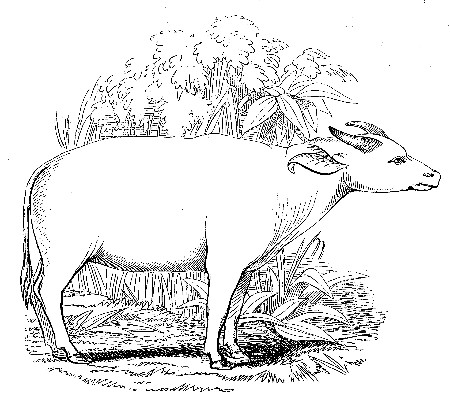 The following remarkable fact, respecting the colour of the offspring being influenced by that of the external objects surrounding the Cow at the time of copulation, is stated by John Boswell, of Balmuto and Kingcaussie, in an essay upon the breeding of Live Stock, communicated to the Highland Society in 1825. He says:—"One of the most intelligent breeders I have ever met with in Scotland, Mr. Mustard, an extensive farmer on Sir James Carnegie's Estate in Angus, told me a singular fact, with regard to what I have now stated. One of his cows happened to come into season while pasturing on a field which was bounded by that of one of his neighbours, out of which field an Ox jumped, and went with the Cow, until she was brought home to the Bull. The Ox was white with black spots, and horned. Mr. Mustard had not a horned beast in his possession, nor one with any white on it. Nevertheless, the produce of the following spring was a black and white calf,[Pg 187] with horns." Another fact, which shows the great care required in keeping pure this breed—(the Angus doddies)—is related of the Keillor Stock, where, two different seasons, a dairy cow of the Ayrshire breed, red and white, was allowed to pasture with the black doddies. In the first experiment, from pure black Bulls and Cows, there appeared three red and white calves; and on the second trial, two of the calves were of mixed colours. Since that time care has been taken to have almost every animal on the farm, down to the Pigs and Poultry of a black colour.