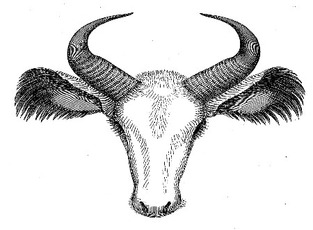 After describing the various members of the Bovine Family according to the Procrustean method of stretching and chopping, Mr. Swainson continues in his peculiarly dogmatic style "The types of form of the Genus Bos, above enumerated, we shall now demonstrate to be a natural group. We have seen that the first represented by the Bos Scoticus, or Scotch Wild Ox, is an untameable savage race, which preserves, even in the domestication of a park, all that fierceness which the ancient writers attributed to the Wild Bulls of Britain and of the European Continent. Let those who imagine that the[Pg 177] influence of civilization, of care, and of judicious treatment, will alter the natural instincts of animals, look to this as a palpable refutation of their doctrine. Where is that boasted power of man over nature? Where the fruits of long-continued efforts and fostering protection? The Bos Scoticus is as untameable now as it was centuries ago, simply for this reason, that it is in accordance with an unalterable law of nature; a law by which one type in every circular group is to represent the worst passions of mankind—fierceness, or cruelty, or horror. In the Urus we consequently have the type of the wild and untameable Feræ among quadrupeds, the eagles among birds, and the innumerable analogies which all the subordinate groups of these two great divisions present. Following this is the typical Ox—a god among the ancients, and that animal above all others, which, from its vital importance to man, we should naturally expect such a nation as the ancient Egyptians would exalt above all others. It is, in short, the typical perfection of the whole order of Ruminants, and consequently represents the Quadrumana among quadrupeds, and the Incessores among birds. The third type is no less beautiful; but it cannot be illustrated without going into details which it is not our present intention to make public: suffice it, however, to say, that in the prominent hump upon the shoulders we have a perfect representation of the Camel, one of the most striking types of the order, while it reminds us at the same time of the Buffalo, the genus Acronatus among the large Antelopes, and numerous other representations of the same form. The fourth type is our Bos Pusio: here we find the horns, when present, remarkably small, but in many cases absent; and[Pg 178] the size is diminutive to an extreme. These also are distinguishing marks of the groups it is to represent: the Tenuirostres among birds, and the Glires, or mice, among quadrupeds, are the smallest of their respective classes; and both are typically distinguished by wanting all appendages to the head, either in the form of crests or horns. The fifth type is, perhaps, the most extraordinary of all; it should represent not only the order Rasores among birds, but also the Camelopardalis among ruminating quadrupeds. Hence we find that, in accordance with the first of these analogies, it is a peaceful domesticated race, and that it has horns of an unusually large size, even in its own group; while, at the same time, those horns have that peculiar structure which can only be traced in the Camelopardalis; they are covered with skin, which passes so imperceptibly to the horny state, that, as Captain Clapperton observes, "there is no exact demarcation where the one commences and the other ends." The five leading types of quadrupeds and birds being now represented, and in precisely the same order, we demonstrate the groups to be natural by the following table:—