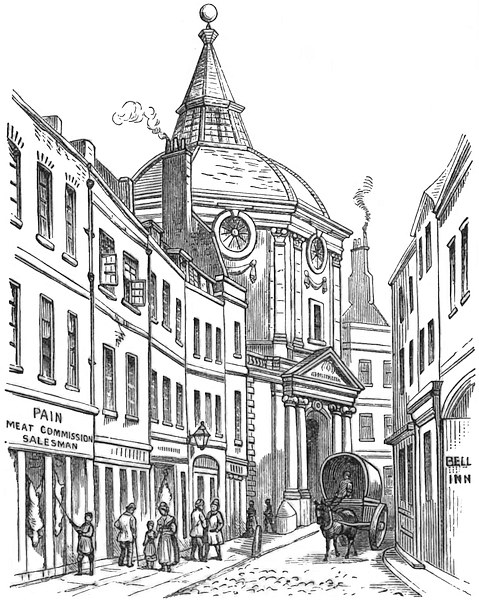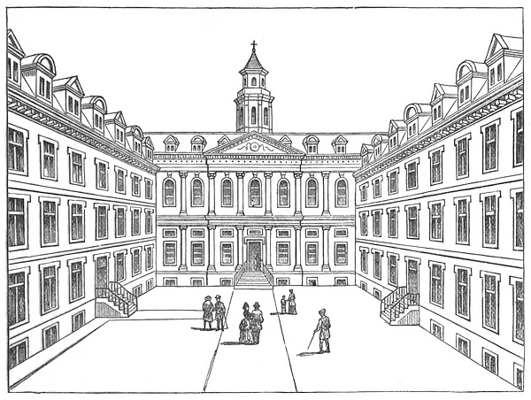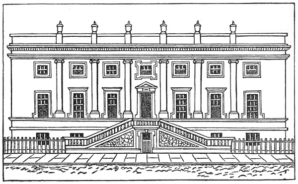 The year 1665 and 1666 were eventful ones for the College of Physicians. At that time the president was Sir Edward Alston, who had managed to repair the financial ruin caused by the civil wars by the expedient of admitting honorary Fellows, and making them pay for the honour. It was in this year that Charles II. attended one of the anatomy lectures, and knighted the lecturer (Sir George Ent) at its termination. Misfortunes, however, were in store, and we can hardly say they were undeserved. When the plague appeared, the president and most of the Fellows fled from town, and during their absence the treasure chest of the College was emptied by thieves. After the plague came the great fire, and in it the College at Amen Corner was destroyed. When the College was rebuilt, a new site, not far from the old one, was chosen. This was in Warwick Lane, Newgate Street, on a piece of ground purchased from Mr. Hollier, a surgeon, for £1,200. The new College was designed by Wren. It was in the form of a quadrangle, with a botanical garden behind it, running down to the City walls. The entrance was through a fine gate, and over this Sir Christopher Wren built a magnificent theatre, forty feet in diameter, with an octagonal-domed roof. This theatre was said to be a model of what a theatre should be. There were, in addition, fine rooms for transacting the College business, and a good library. Only about 140 books had been saved from the fire, but the new College was soon furnished with books by the library of the Marquis of Dorchester, which that nobleman80 bequeathed to it. He appears to have been a learned and somewhat eccentric man, who studied “all manner of learning, both divine and human.” He became a Fellow of the College in 1658, and shortly before had been made a Bencher of Gray’s Inn. It is impossible not to regret the fine old College, with its spacious courtyard and physic garden and its historic associations. But it would seem as if no purely educational establishment81 can flourish in the City of London. The Royal Society, the College of Physicians, and the College of Surgeons have all moved away, and Gresham College alone is left, as if to show the impossibility of flourishing in the richest city of the day. Much as one may regret82 the old College, it is probable that Sir Henry Halford did right in advising in 1824 a move to Pall-Mall, notwithstanding that the present house is much smaller than the old one, and by no means remarkable for the convenience of its arrangement.