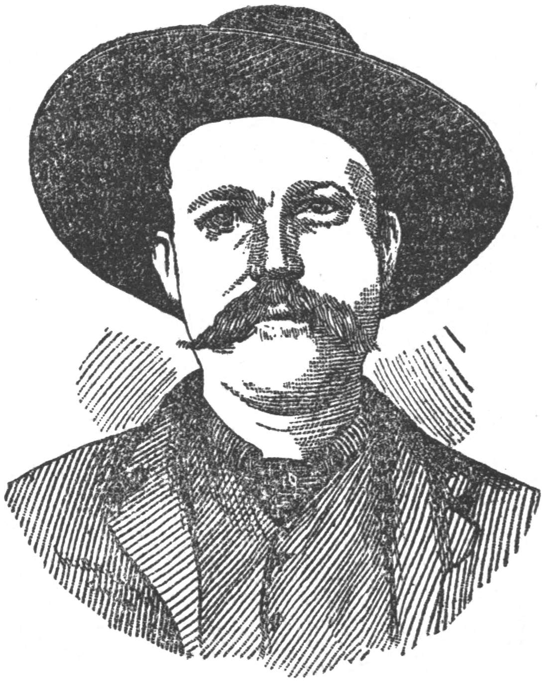 Rube worked awhile on his uncle’s farm, but soon drifted into that nondescript character known as a Texas cowboy. Meantime, in 1876, he married Miss Virginia Alvison, in Wise County, Texas, and from this marriage two children were born, who are now with their grandparents in Alabama, the elder being a boy of twelve years. This wife died in 1880, and he again married in 1884 a Miss Adeline Hoover, of Erath County, Texas. These events served to restrain his natural inclinations for excitement and adventure, and it may be truthfully said that from 1872 to 1886 Rube Burrow transgressed the law only to the extent of herding unbranded cattle and marking them as his own. In this pursuit he traversed the plains of Texas, enjoying with an excess of keen delight a companionship of kindred spirits, whose homes were in the saddle, and who found their only shelter by day and by night under the same kindly skies. As he grew to manhood he had given full bent to his love for the athletic pursuits incident to life upon the then sparsely settled plains of the Lone Star State. Taming the unbridled broncho, shooting the antelope, and lassoing the wild steer, under whip and spur, he soon gained fame as an equestrian,10 and was reckoned as the most unerring marksman in all the adjacent country. With a reputation for all these accomplishments, strengthened by an innate capacity for leadership, Rube ere long gathered about him a band of trusty comrades, of which he was easily the leader.