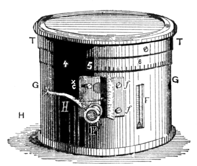 The department of science which regards the physical phenomena arising from these varying conditions is called meteorology. The instruments employed with which to indicate or measure the extent of these changes, are of various kinds. Thus the thermometer indicates the relative temperature, the hygrometer the humidity, the anemometer the force or the velocity of the wind, and the barometer the pressure of the air which arises directly from its weight.