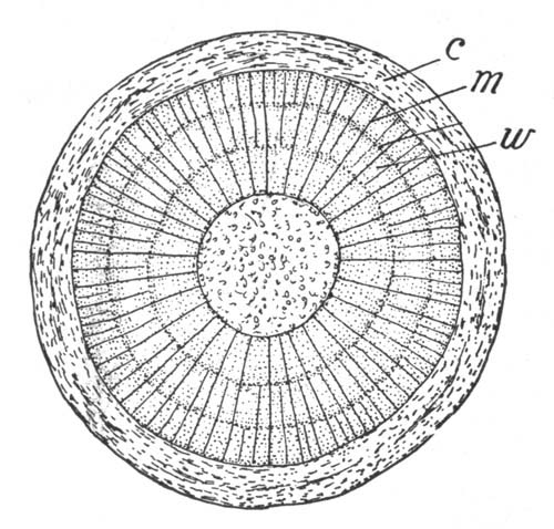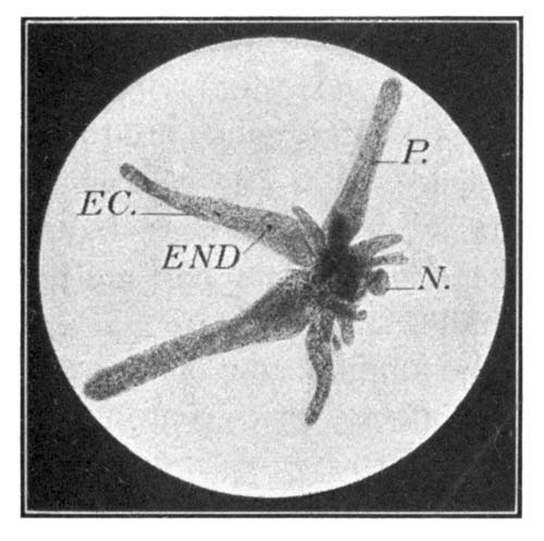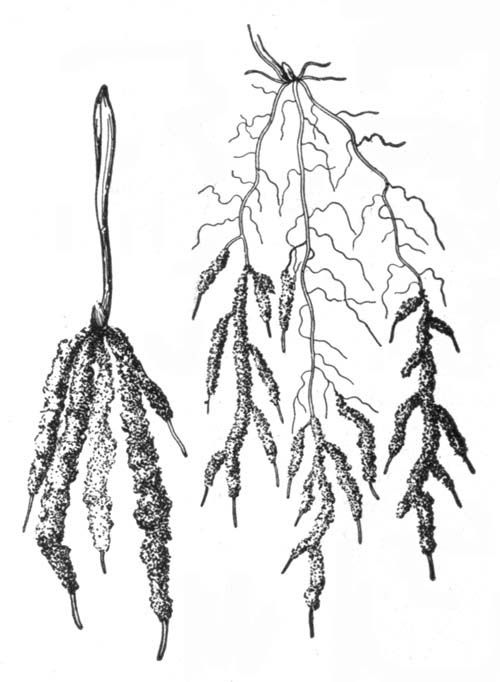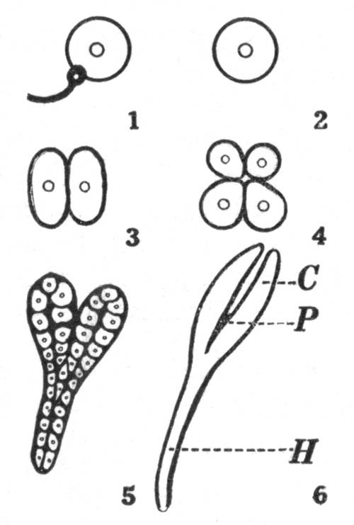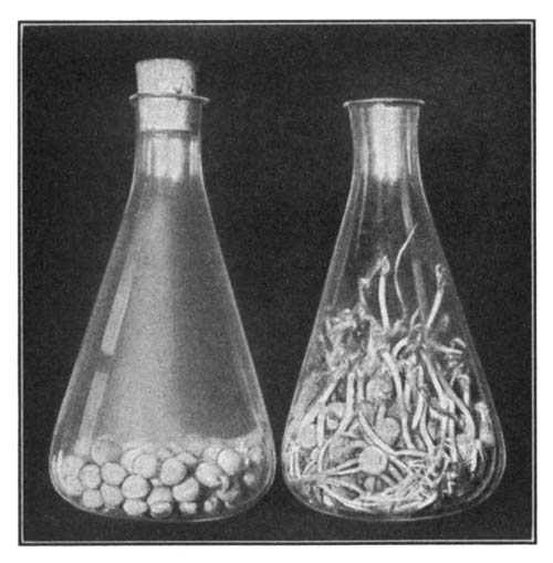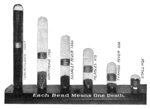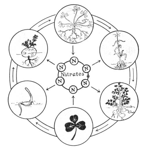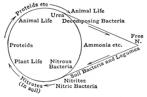 Bacteria in their Relation to Man.—In still another way, certain plants vitally affect mankind. Tiny plants, called bacteria, so small that millions can exist in a single drop of fluid, exist almost everywhere about us,—in water, soil, food, and the air. They play a tremendous part in shaping the destiny of man on the earth. They help him in that they act as scavengers, causing things to decay; thus they remove the dead bodies of plants and animals from the surface of the earth, and turn this material back to the ground; they assist the tanner; they help make cheese and butter; they improve the soil for crop growing; so the farmer cannot do without them. But they likewise sometimes spoil our meat and fish, and our vegetables and fruits; they sour our milk, and may make our canned goods spoil. Worst of all, they cause diseases, among others tuberculosis, a disease so harmful as to be called the "white plague." Fully one half of all yearly deaths are caused by these plants. So important are the bacteria that a subdivision of biology, called bacteriology, has been named after them, and hundreds of scientists are devoting their lives to the study of bacteria and their control. The greatest of all bacteriologists, Louis Pasteur, once said, "It is within the power of man to cause all parasitic diseases (diseases mostly caused by bacteria) to disappear [Pg 17]from the world." His prophecy is gradually being fulfilled, and it may be the lot of some boys or girls who read this book to do their share in helping to bring this condition of affairs about.