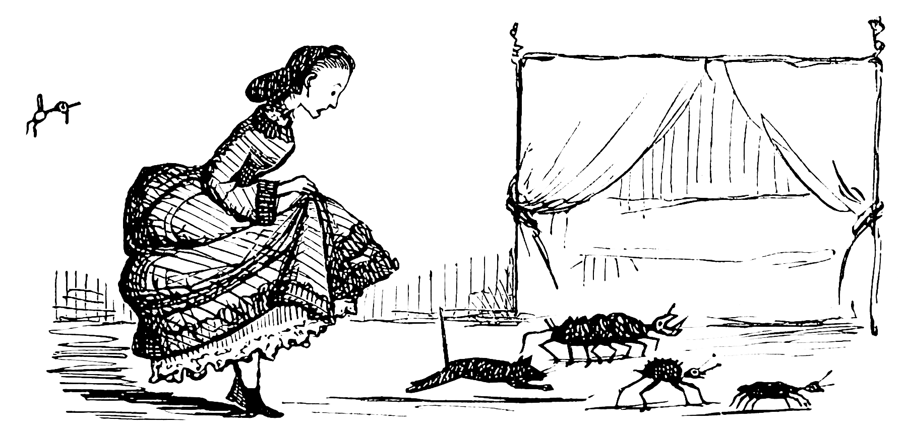 Our Artist, on an entomological expedition in the Bishop's Garden, is disagreeably surprised to find such sprightly specimens.