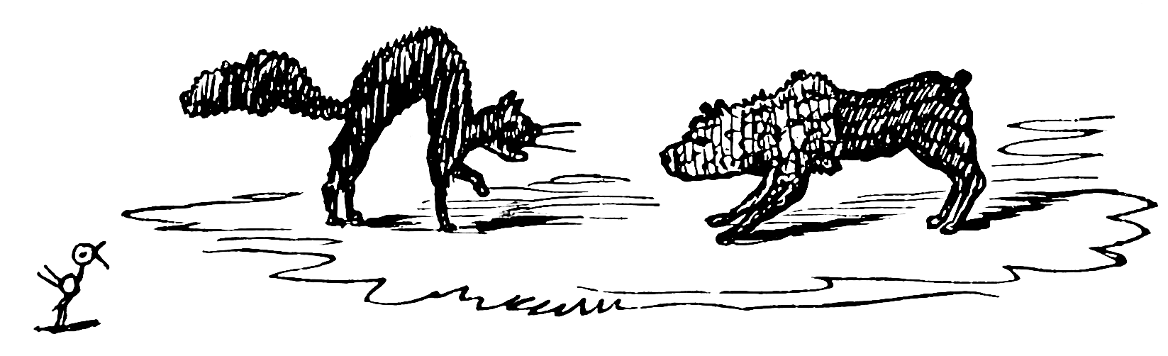 A slight difference arises between the housekeeper's cat and the butcher's dog, who has just come out in his summer costume.