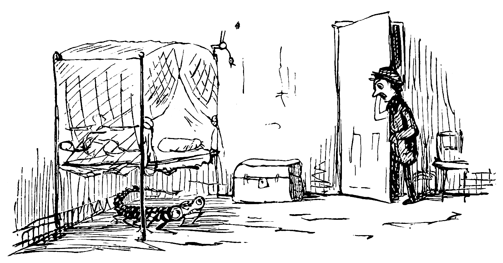 First night at the "Gran Hotel Leon de Oro."—Our artist is accommodated with quarters on the ground-floor, convenient to the court-yard, and is lulled to sleep by a little domestic concert of cats, dogs, donkeys, parrots and game-cocks.