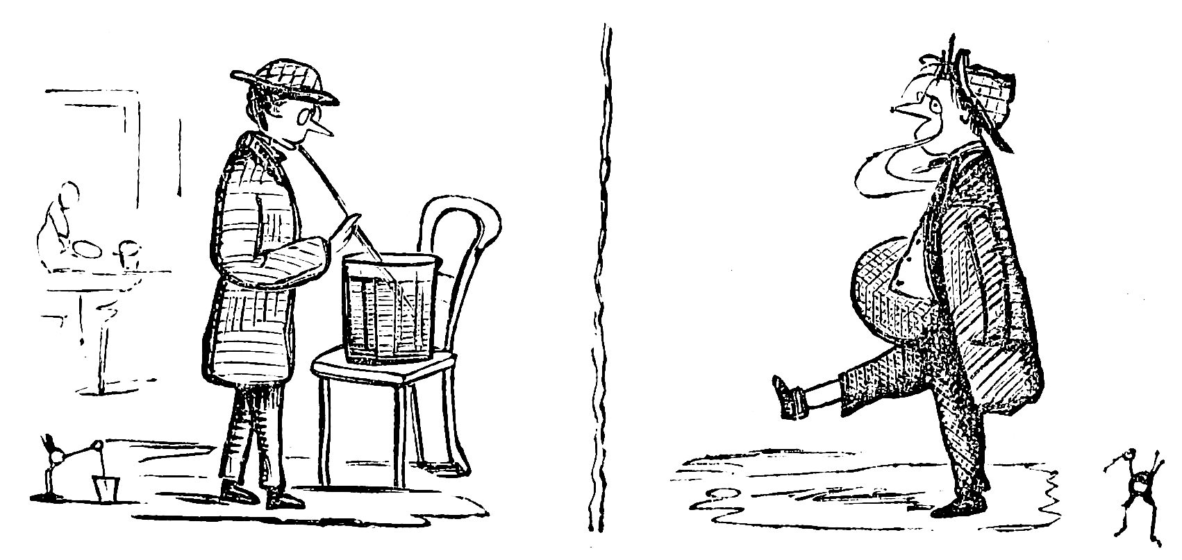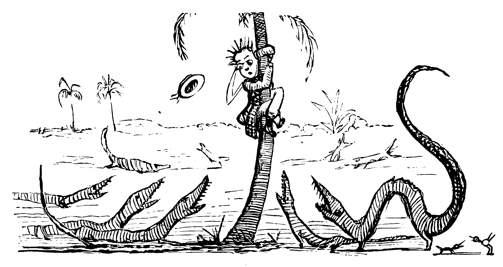 Our Artist having prepared himself for a jolly plunge, inadvertently observes an insect peculiar to the water, and rather thinks he won't go in just now.
