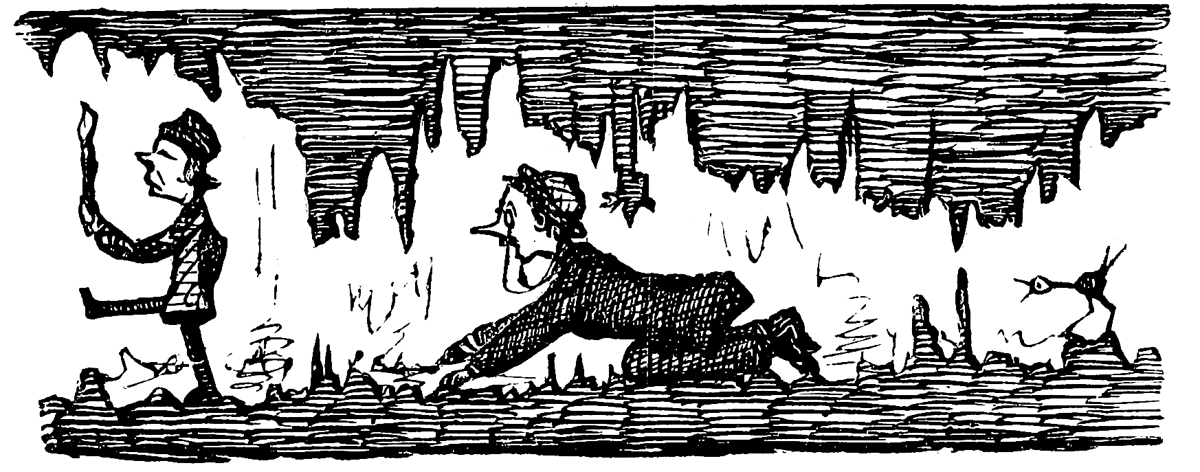 A section of the interior—showing the comfortable manner in which our artist followed the guide, inspected the stalactites, and comported himself generally.