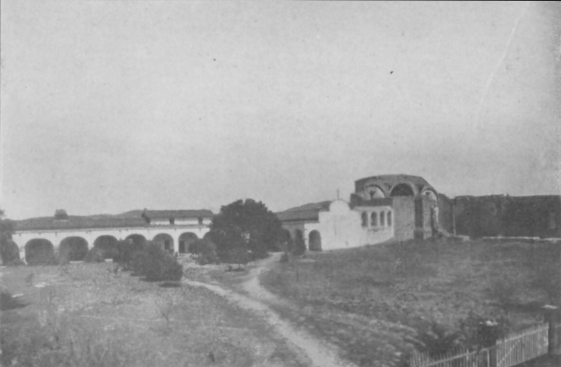 MISSION SAN LUIS REY, PARTLY RESTORED.