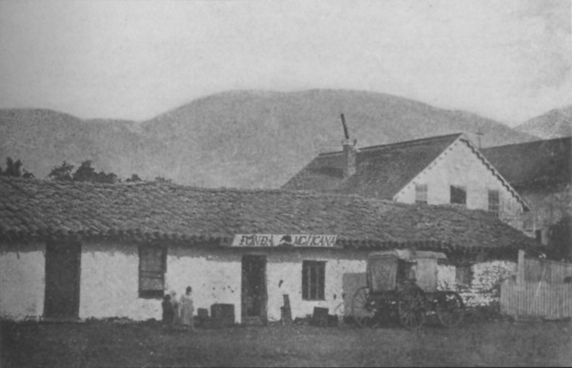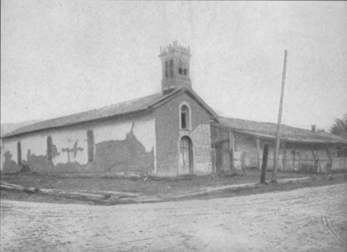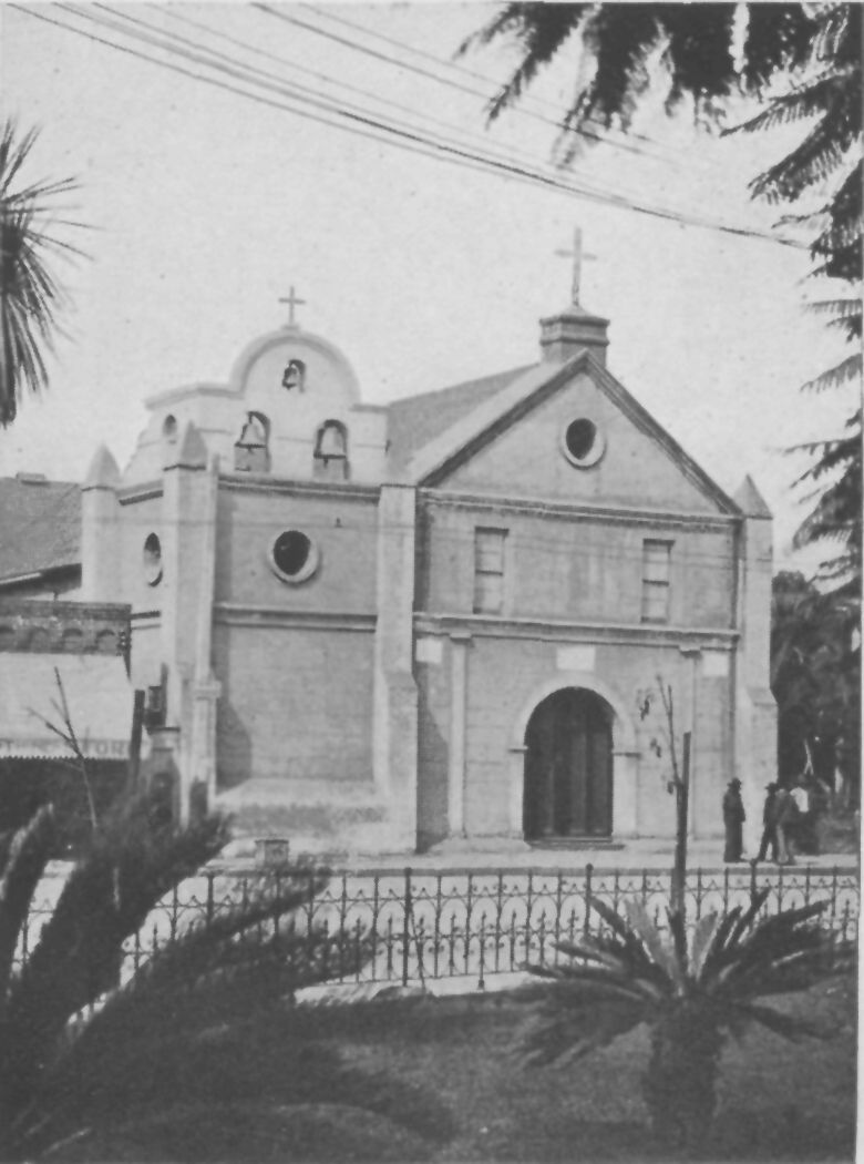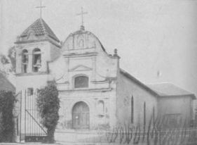 MISSION CHAPEL AT LOS ANGELES, FROM THE PLAZA PARK.