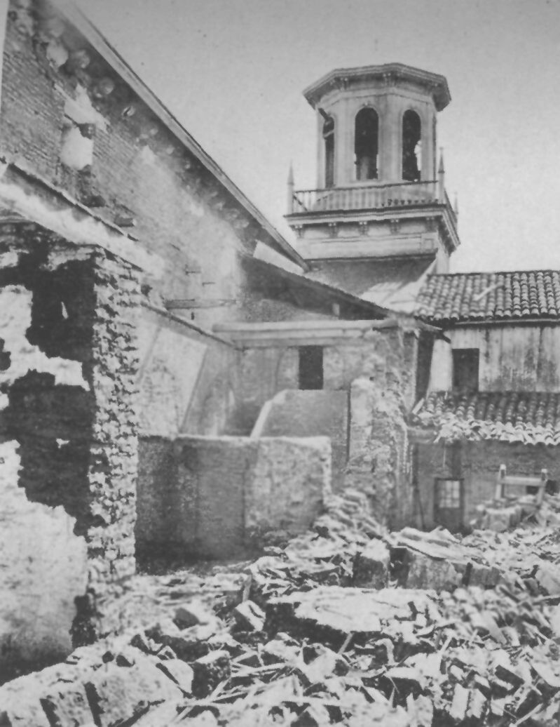 In the ruins of the San Fernando church faint traces of the decorations o£ the altar can still be seen in two simple rounded columns, with cornices above.