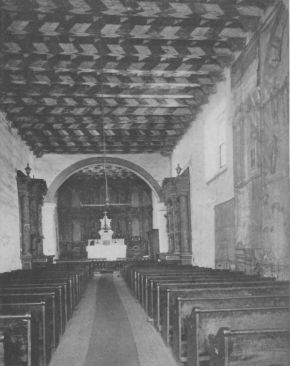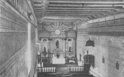 INTERIOR OF MISSION SAN MIGUEL FROM THE CHOIR GALLERY.