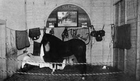 Once, when he was being brought south by rail, Jasper had to leave him in the Los Angeles freight yards—still in his car—to see that their tickets were properly endorsed, and he was gone for a half an hour or more. When he returned poor Captain was in a complete lather of perspiration. The unusual noises of the railroad yard in a large city, as he was shut up in a car so that he could not see, had fretted him into a frenzy. As soon as the groom returned he signified his satisfaction with whinneyings and nose-rubbings and in a very short time was cool again.
