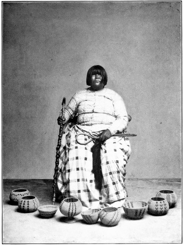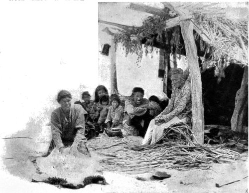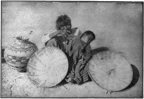 At Albuquerque one may see, in Fred Harvey’s collection in the Mission-style depot, a rare and precious gathering of Indian baskets, blankets, silverware, etc., that is one of the finest in the West. It ranks with the highest, and was largely gathered and placed under the personal direction of Dr. George A. Dorsey, the eminent ethnologist of the Field Columbian Museum. Nearly all the pueblos may be reached with this city as a radiating center, though Taos and the Indian villages of the northern Rio Grande valley are more accessible from Santa Fe. Isleta and Laguna are passed a few miles further west. A three hours’ drive from Laguna, by way of the Enchanted Mesa, brings you to the sky city of Acoma. Zuni is a day’s stage ride south of Gallup, New Mexico. At Winslow, or Canyon Diablo, Arizona, one may leave the railway for the 70 or 90 mile ride across the Painted Desert to the region of the Hopis, the snake-dancing Indians to whom I have often referred. At Williams, a little further west, on the branch line to the Grand Canyon, one may visit the Havasupais, and at Kingman, the Wallapais. At Needles, on the Colorado River, the boundary line between Arizona and California, one may see the Mohaves, and on the river, reached by boat from Needles, some forty miles below, are the Chemehuevis. In California, on the San Diego branch of the Santa Fe, one may reach various villages of 267 Mission Indians; Pala, Rincon, and several others from Oceanside; and San Ysabel, Mesa Grande, Los Coyotes, etc., from San Diego by team to Warner’s Ranch. Saboba is reached on the San Jacinto branch, and Temecula on the Temecula branch.