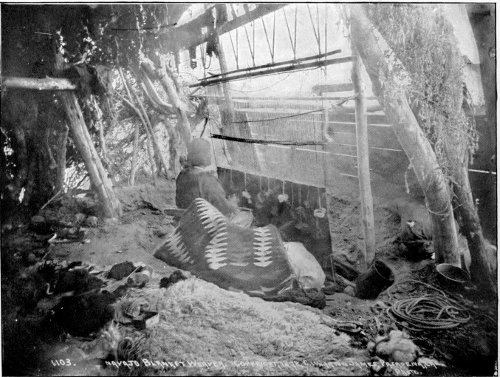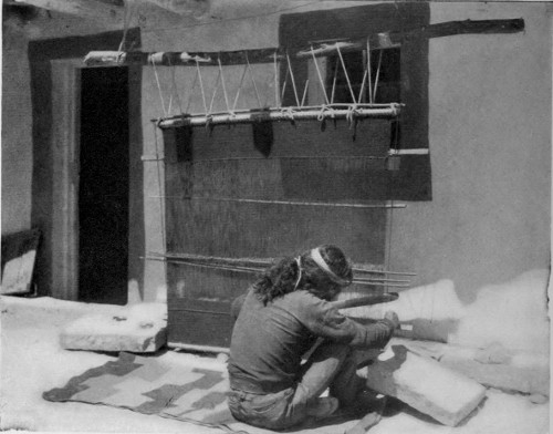 In color, too, the original work of the Indian weavers, before the vile aniline dyes were forced upon them by the “civilized” and “Christian” traders and missionaries, was above criticism. The old baskets and blankets are eagerly sought after, at fabulous prices, by the most refined and critical of artists and connoisseurs because of the perfection of their color harmonies. In every good collection are to be seen such specimens that are both the admiration and despair of modern artists.