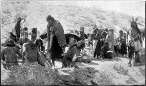 CARRYING THE SNAKES IN THEIR MOUTHS IN THE HOPI SNAKE DANCE.