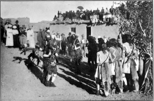 In crossing the continent from Chicago to the Pacific Coast on the Santa Fe route, one strikes the “Indian 266 country,” to which I refer, about half a day before reaching Albuquerque, New Mexico. Here is what might be termed “the heart of the Pueblo Indian country.” The word “pueblo” is Spanish for “town,” so the name merely means the stay-at-home town Indians as distinguished from the nomad or wandering tribes of the great plateaus.