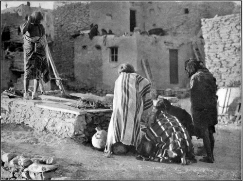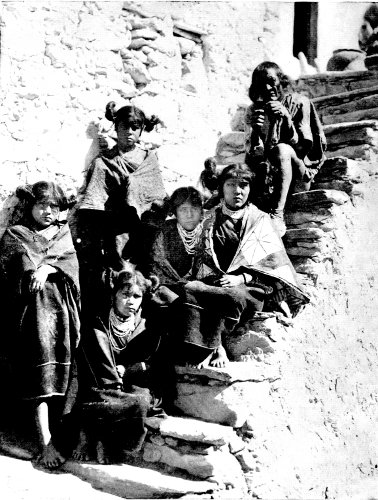 GROUP OF HOPI MAIDENS AND AN OLD MAN AT MASHONGANAVI. 7