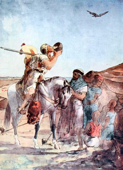 Falconry is an episode of African life which peculiarly attracted Fromentin. He has treated it in a number of different pictures, all equally remarkable. The collection in the Louvre possesses two: the one which we give here is distinguished by the cleverness of its composition, the way in which its component parts are distributed throughout the prospective, in accordance with the desired effect, thus lighting up the gray immensity with joyous and violent tints.
