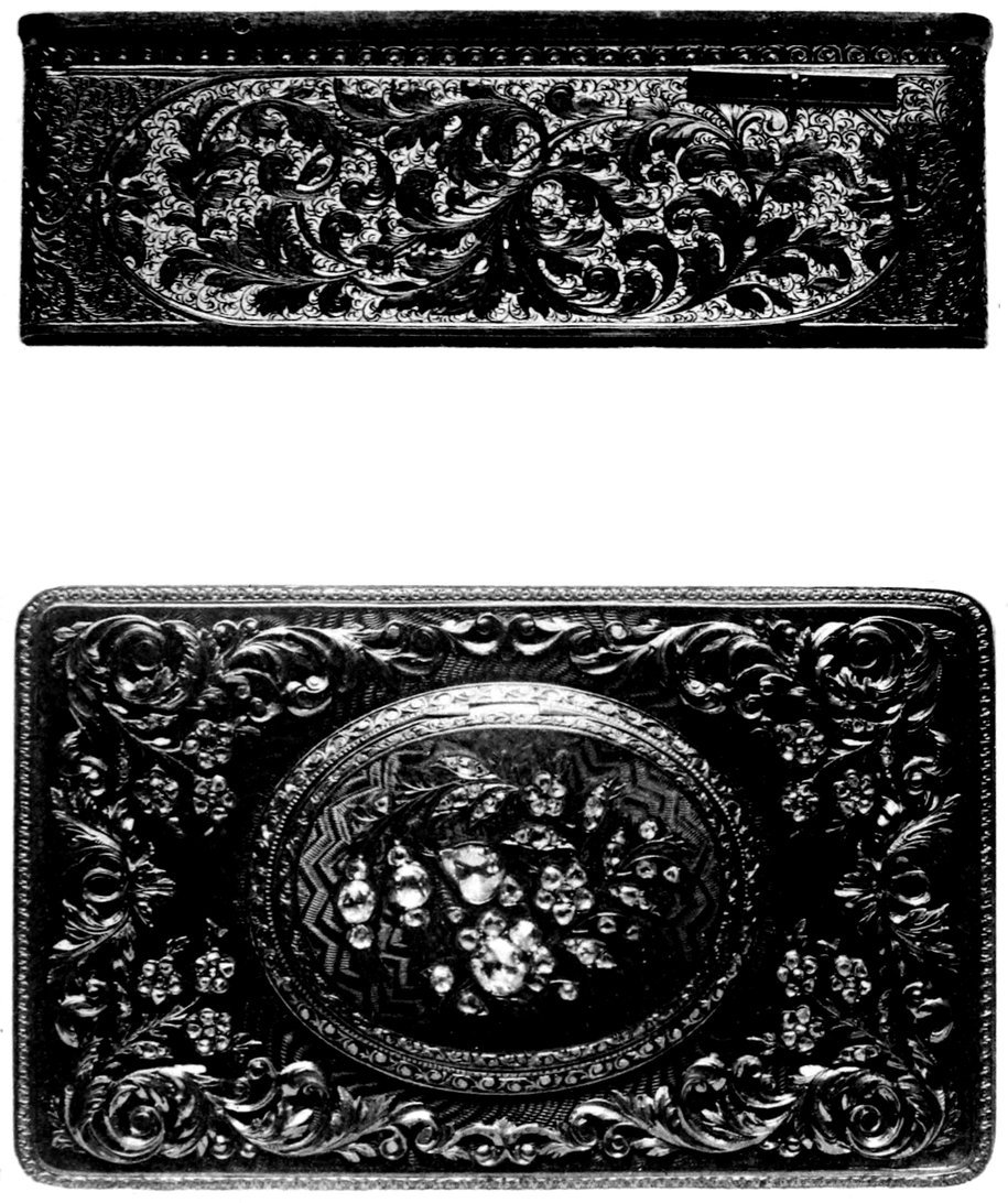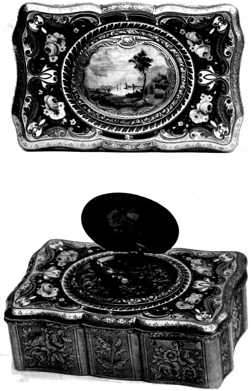 Some of their works have anyhow come under our notice, for instance a snuff box which belongs to a private collection of Neuchâtel and is loaned to the Museum of La Chaux de Fonds. The origin of that piece has been traced as it has been won in a lottery, the curious advertisement concerning which (dated 27 March 1847) is still to be seen in the Museum of La Chaux de Fonds. The number of tickets issued for the lottery was 2700, each of which was valued at “3 Francs of France.” This snuff box, bearing No 5, was valued at the time at 420 “Francs of France” (what should its value be now)?