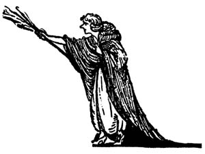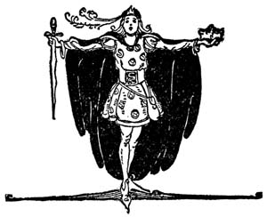 But one accompanied the Prince whom they did not expect. It was the Shadow Witch. Although by her grey magic she had sent a shadow prince to[198] deceive her brother, she had never for a moment lost sight of Prince Radiance, and now that he was drawing near to the Wizard, she knew that the time for her further good offices had arrived. If she could prevent him from being seen by her brother until the Prince was near enough to use his Sword of Flames, she knew that all would be well.
