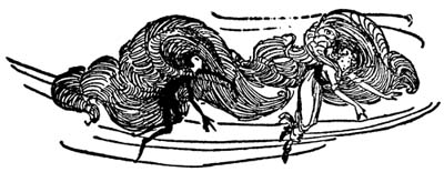 [212]Then with so mighty a rush that nothing could stand before it he pounced upon Curling Smoke and those whom he had in his power. “How dare you come into my presence unbidden?” he shrieked. “Out of my kingdom all of you! Out, out into the Borderland.”