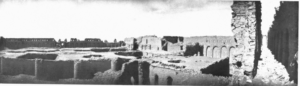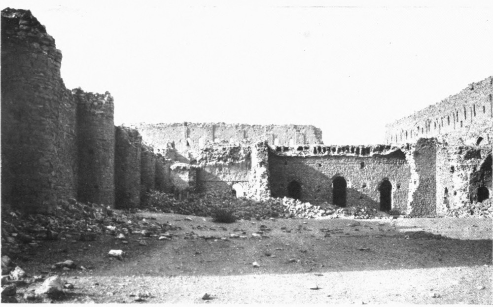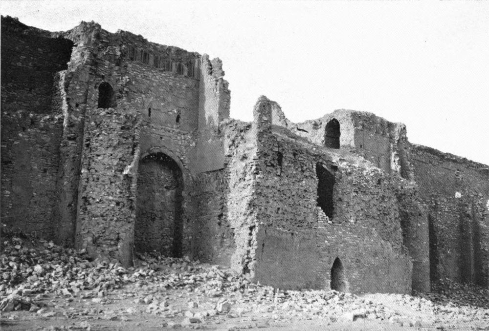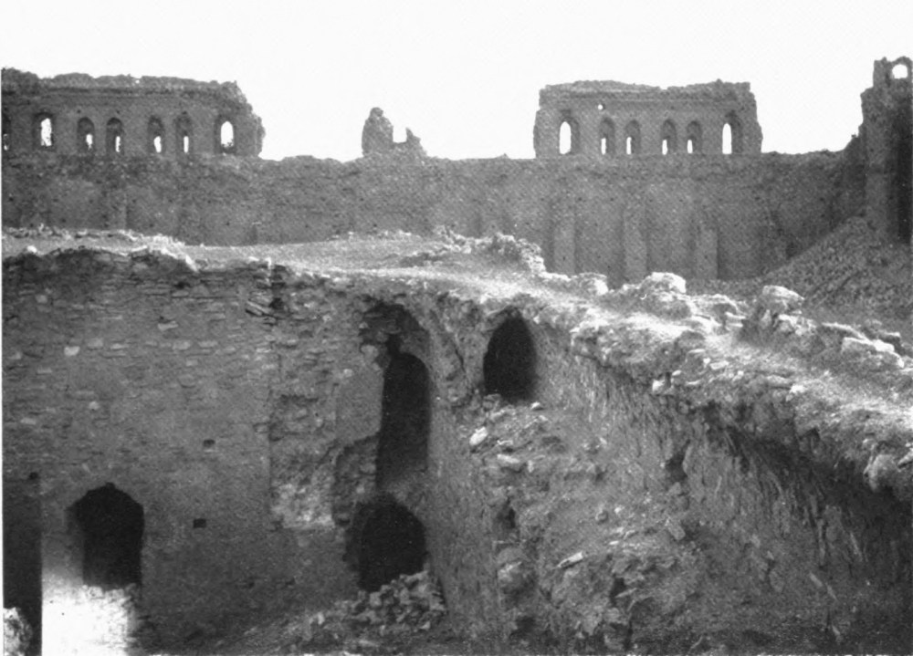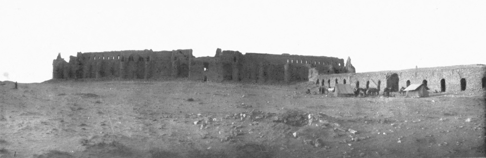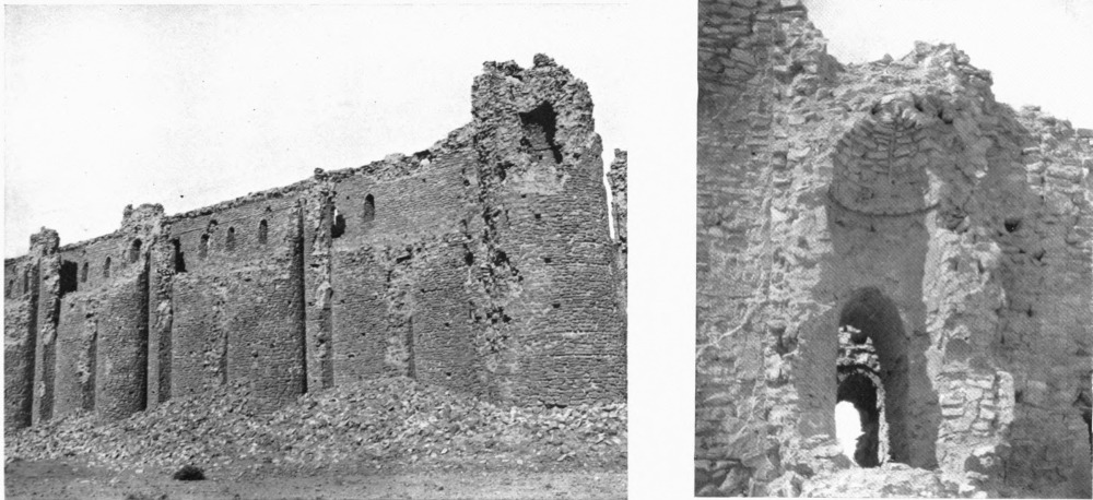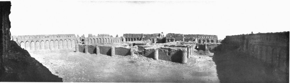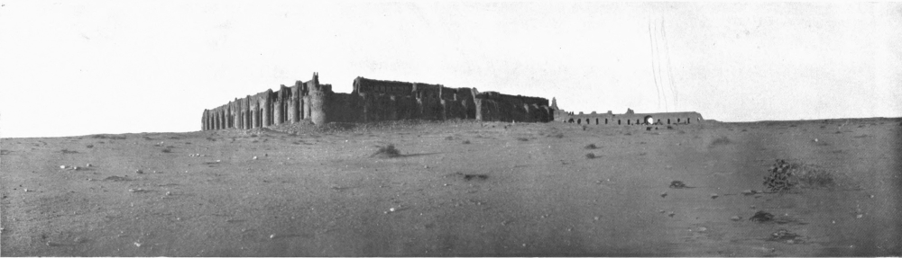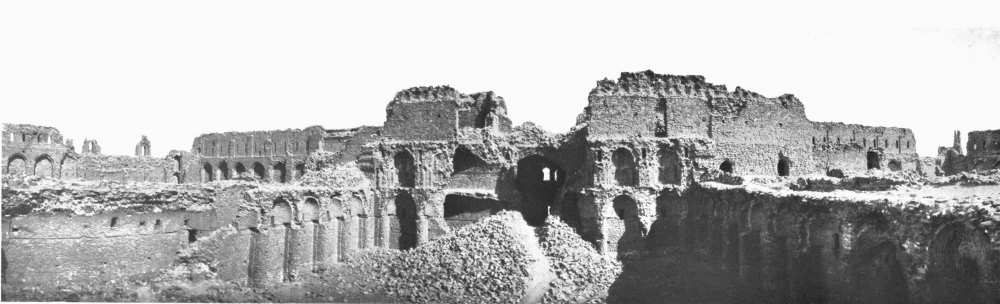 With this I must take leave of a field of study which formed for four years my principal occupation, as well as my chief delight. A subject so enchanting and so suggestive as the palace of Ukhaiḍir is not likely to present itself more than once in a lifetime, and as I bring this page to a close I call to mind the amazement with which I first gazed upon its formidable walls; the romance of my first sojourn within its precincts; the pleasure, undiminished by familiarity, of my return; and the regret with which I sent back across the sun-drenched plain a last greeting to its distant presence. The unknown prince at whose bidding its solitary magnificence rose out of the desert, the unknown lords who dwelt in its courts, cannot at the time of its full splendour have gloried and rejoiced in their handiwork and their inheritance more than I who have known it only in decay; and, in the spirit, I part from it now with as much unwillingness as that which I experienced when I withdrew, further and further, from its actual protection.