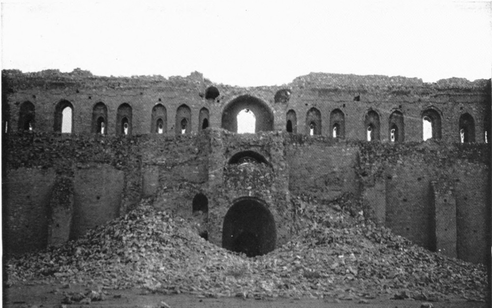 In the present study my eyes have been turned chiefly, and necessarily, backwards. I have not been so much concerned with the offspring as with the parentage of the buildings which I have passed under review. Of these buildings the most important is the great palace of Ukhaiḍir on the eastern side of the Syrian desert. I have given, also, the first plans and photographs of three small ruins in its vicinity, Qṣair, Mudjḍah, and ‘Aṭshân. If they do not belong to the same period as the palace, they cannot be far removed from it in date. The problems presented by Ukhaiḍir led me back to Sasanian architecture, and I publish here new plans and photographs of two vast constructions at Qaṣr-i-Shîrîn. I have, further, taken this occasion to publish the plans of two mosques, the one at Diyârbekr, the other at Mayâfârqîn, both of which belong to a later period. The first of these has been known to us only through a sketch made by Texier, which I found to be inaccurate in many significant points, as it is also incomplete. The second has not previously been studied.