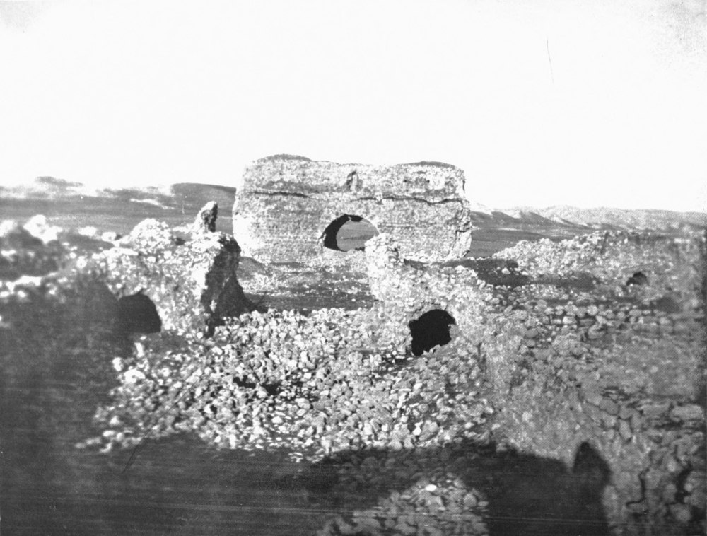 Major John Taylor saw it in June 1790 and dismissed it with short shrift.[7] He too was following the desert road from Aleppo to Baṣrah. On leaving Shethâthâ he says: ‘The camels being loaded at half past 6 this morning, we set forward over a barren flat desert. We crossed the bed of a river and at{xi} 11 a.m. we passed to our left the ruins of a small square fort, distant about half a mile, which the Arabs call Ula Kayder.’