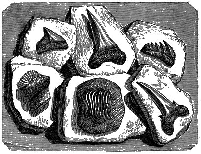 | 4. | Teeth of several species of the Shark tribe, in chalk; from Lewes. | 12 |
