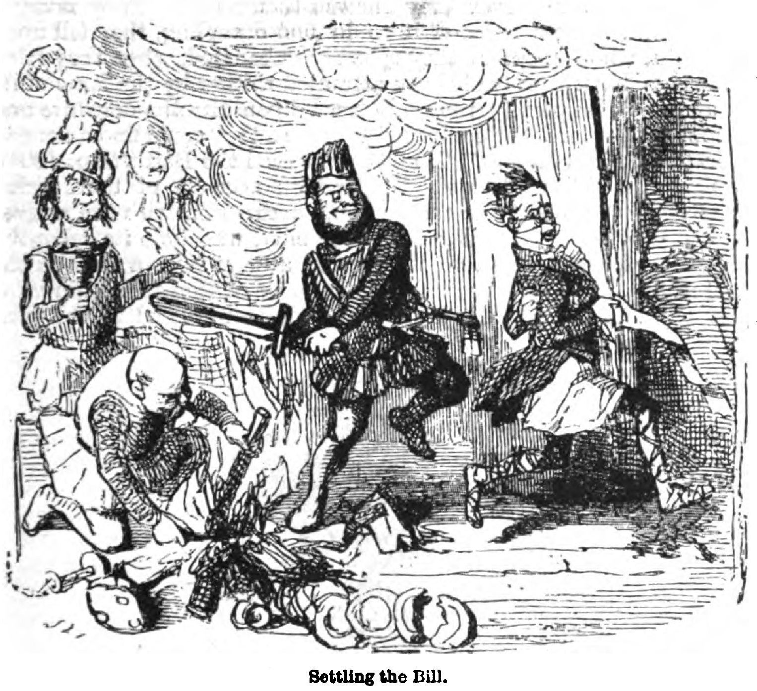 * The story of Brutus and the Trojans has been told in such a variety of ways, that it is difficult to make either head or tail of it. Geoffrey of Monmouth says that Brutus found Britain deserted, except by a few giants—from which it is to be presumed that Brutus landed at Greenwich about the time of the fair. Perhaps the introduction of troy-weight into our arithmetic may be traced to the immigration of the Trojans, who were very likely to adopt the measures—and why not the weights—with which they had been familiar.