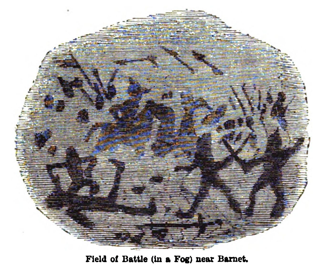 The alarm excited in London was something utterly indescribable. People who lived in the town rushed into the country to be out of the way, and the inhabitants of the provinces poured into the metropolis as the best place for avoiding danger. The householders took up arms, and formed themselves into squares, crescents, lanes, streets, alleys, or anything. Some bolted their doors, others bolted themselves, and all gave unspeakable symptoms of terror and confusion. A camp was ordered to be formed in the suburbs, and after getting a large force together it was at first resolved to turn 'em out at Turaham Green, but Finchley was at length decided upon as the place of rendezvous.