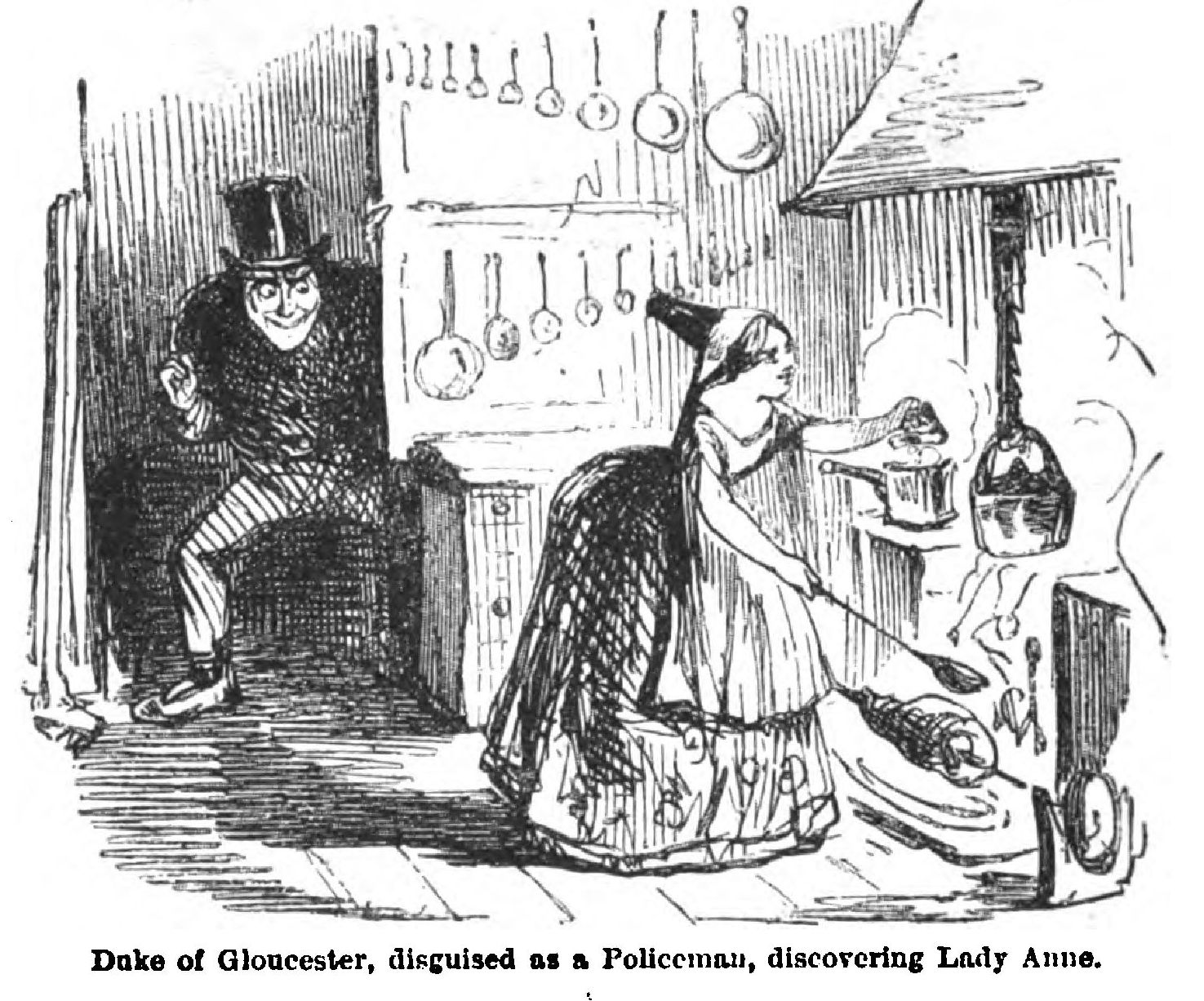 In the north, the insurrection took a very bold form, and Mr. Forster, a gentleman of great ability—a barrister, we believe—joined with the Earl of Derwentwater, who was ready with all his retainers, the only kind of retainers, by the way, with which his learned colleague was at all familiar. Being joined by some gentlemen in blue bonnets, who had come from over the border, they proclaimed the Pretender, and would have seized upon Newcastle, with the intention of sparing the coals and sacking only the city; but the gate had been shut, and the whole party was not strong enough to force it open. They retired therefore to Hexham, and a literary gentleman among them bewailed their failure as he sat in the coffee-room of the inn at Hexham, in doleful hexameters. They next retired by way of Lancaster to Preston, whose Pans they hoped would prove preserving pans to themselves; but General Wills being sent to attack them, proved the fact, that where there are the Wills there are always the ways of accomplishing an object.
