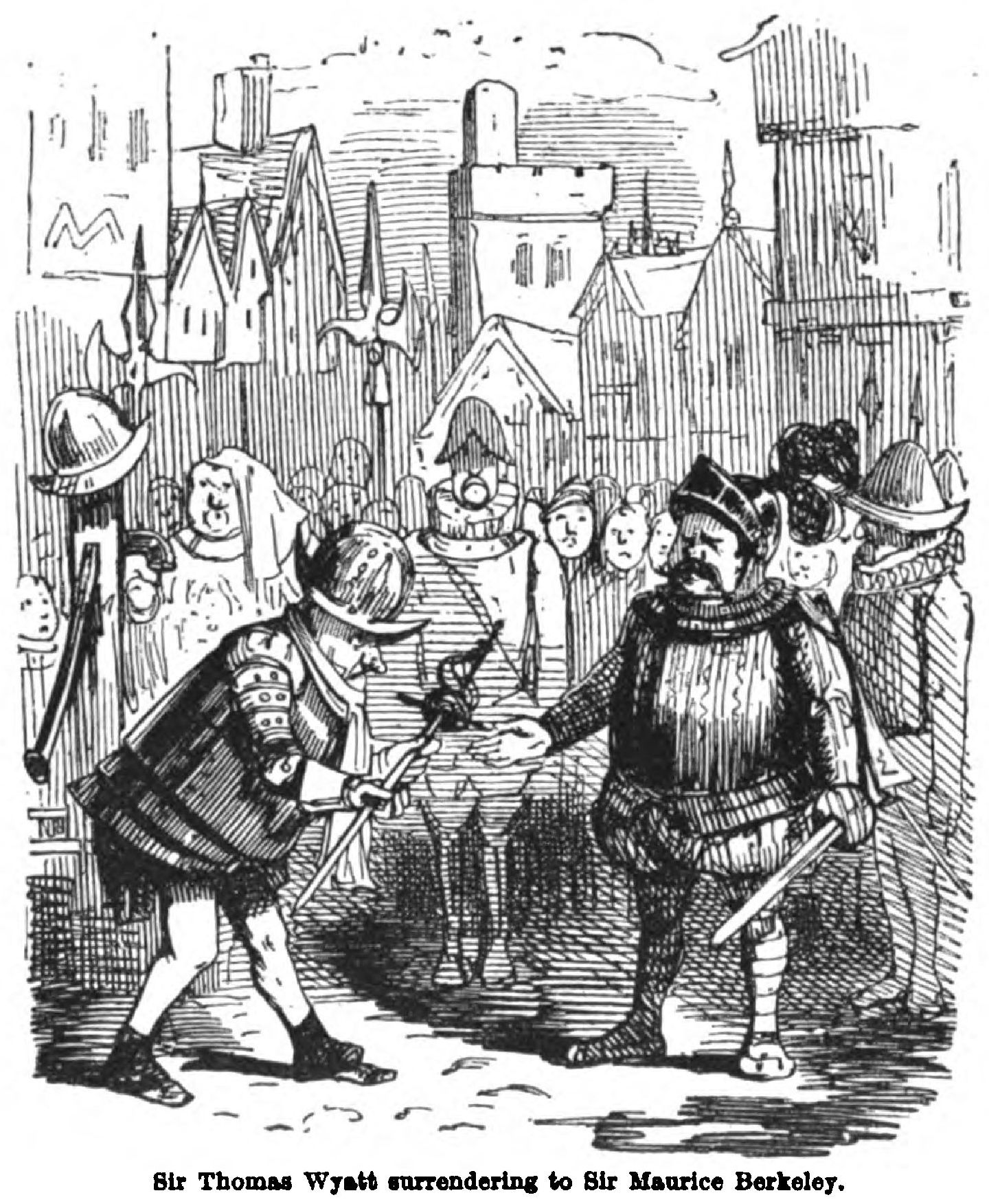 Instead of allowing this miserable rebellion to die a natural death—we cannot say that it ended in smoke, for the rebels had no money to purchase gunpowder—the Government of the day had the rashness to keep the thing alive by prosecuting those who had been concerned in it. Half a dozen nobles were seized and put upon their trial, when the poor creatures whimpering out an acknowledgment of their guilt, were sentenced to death, and two were taken to the scaffold. A third, the Lord Nithesdale, had also been condemned; but his mother having come to see him in prison, they got up between them a dramatic incident, by effecting an exchange of dress; and while the lady remained in gaol like a man, the gentleman walked away in female attire.