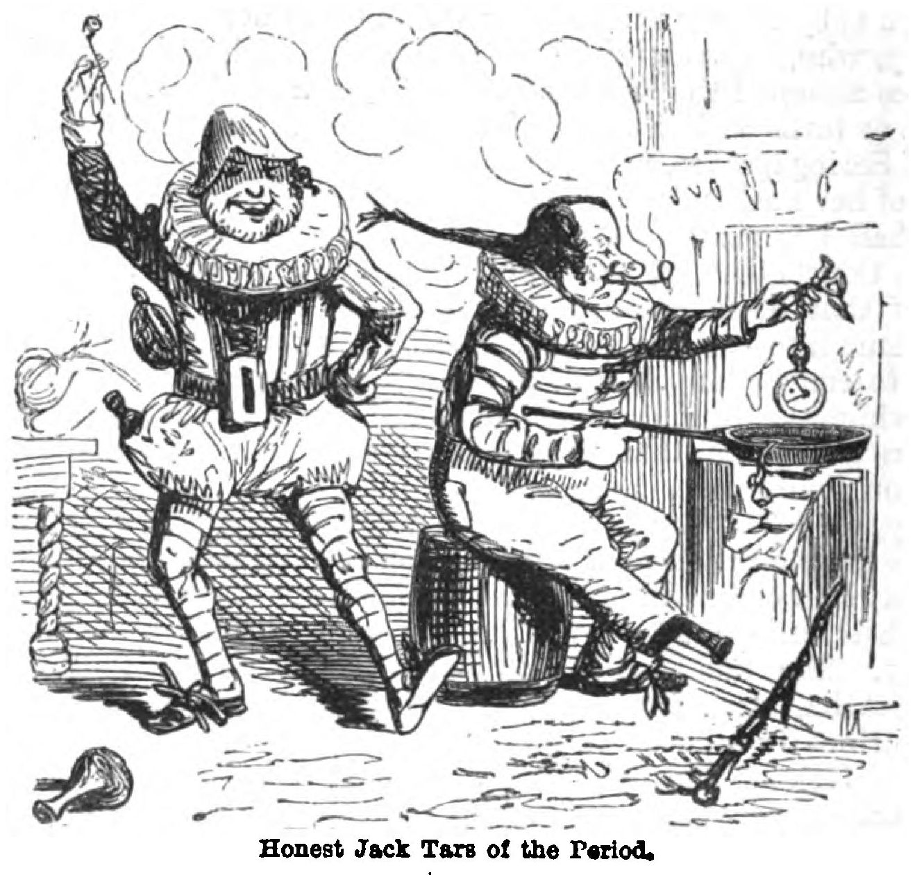 England could not rest satisfied without interfering in the disputes of other states, and had lent a helping hand to the Archduke Charles of Austria, who was playing a sort of game at bob-cherry with the Spanish crown, which hung suspended over his head in a very tempting manner. A fleet was sent under Admiral Sir George Booke to convey the archduke to Lisbon; and Booke, who was as cunning as an old crow, proceeded towards Barcelona, which would have been nuts for him had he succeeded in taking it. In this attempt, however, he failed; but putting his vessel astern, and altering her gib towards Gibraltar, he made an attack on the fortress, which he took with the utmost facility. For this service the conqueror was rewarded with an empty vote of thanks, and he had no sooner got the copy of the resolution than he put it in his pipe and smoked it—according to some; or, as others say, he merely lighted his pipe with the valueless document.