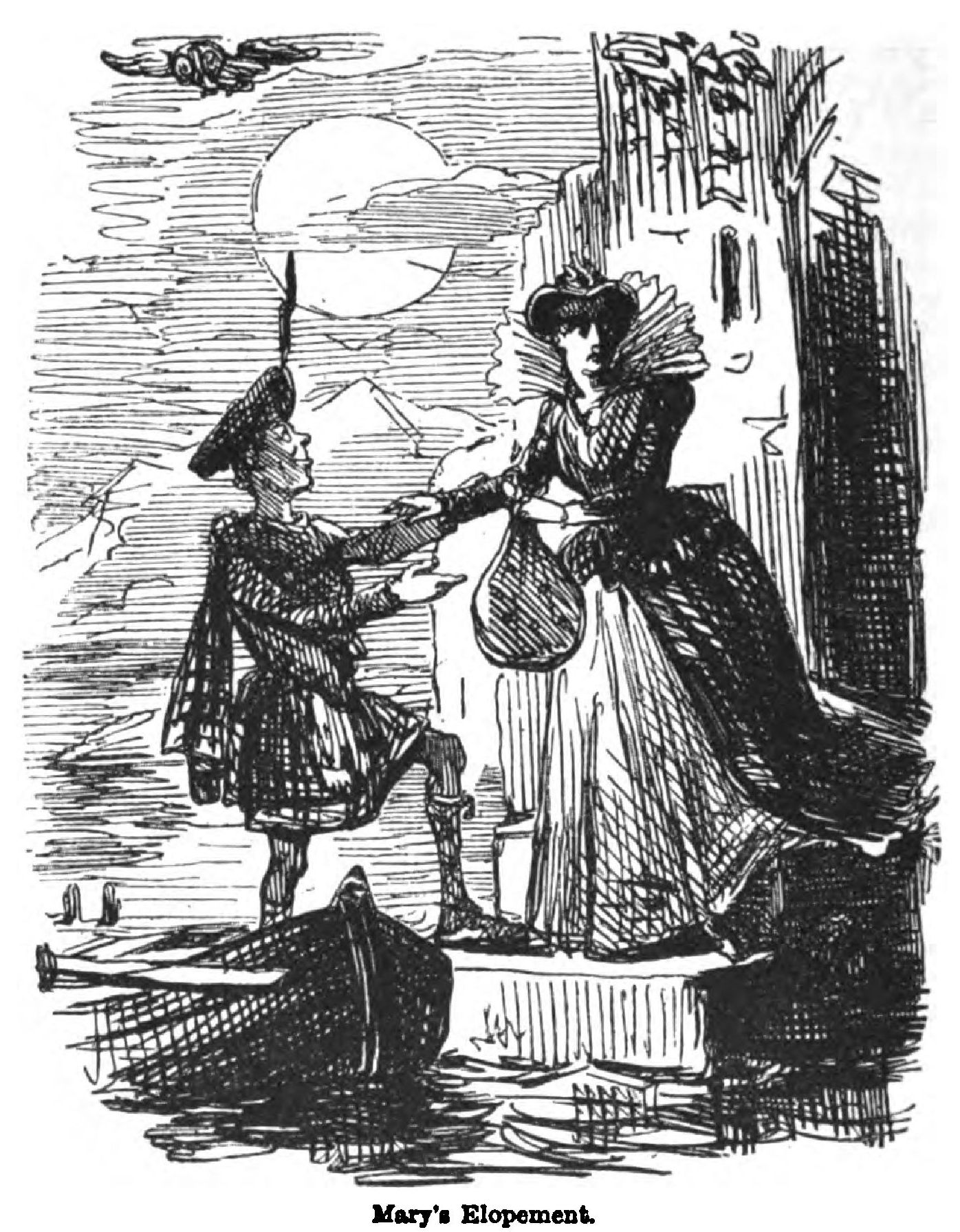 Mr. Forster, hearing that there was no hope, despatched a trumpeter—a gentlemanly young man, who was quite equal to a solo of the kind—to negociate a treaty. He could get no other answer than an intimation that the rebels might expect to be slaughtered; and, being very much cut up by the news, they wisely resolved to surrender. The noblemen and officers of the party were sent to London, where they were led through the streets bound together and pinioned, which caused one of them to wish that his pinions were those of a bird, so that he might be enabled to fly away from his captivity. Though the Pretender must have known, or might have known, that his pretentions were about as hopeless as they could possibly be, he resolved on landing in Scotland, and he positively arrived with nothing more than a special train of six gentlemen. He came in disguise, and passed through Aberdeen without being known, till he came to Feterosse, where he was met by the Earl of Mar and thirty nobles of the first quality, though all their quality could not of course make up for their lamentable deficiency in quantity. When the Pretender saw his friend's beggarly show of adherents, he addressed Mar with great levity, telling him he had been "a sad Mar to his hopes," and indulged in other poor frivolities. "As I've come, however," he added, "I may as well be proclaimed." And the ceremony was gone through with mock gravity. He next proceeded to Scone, "for," said he, "we must have a coronation, you know." And he behaved altogether in such a manner as to lead us to believe that he relished the ludicrous points of his own very ridiculous position. Having gone so far in the mockery, he crowned the absurdity instead of being crowned himself, by making a speech to his grand council, intimating that he had no arms to fight with, no ammunition to load the arms with if he possessed any, and no money to purchase the ammunition if he felt disposed to try its effects upon his enemies. Under these circumstances, he intimated that his presence among them should be regarded as a flying visit, just to say "How d'ye do?" and "Good-bye"; after which, with the latter salutation on his lips, he popped into a boat, and was "off again" for the Continent.