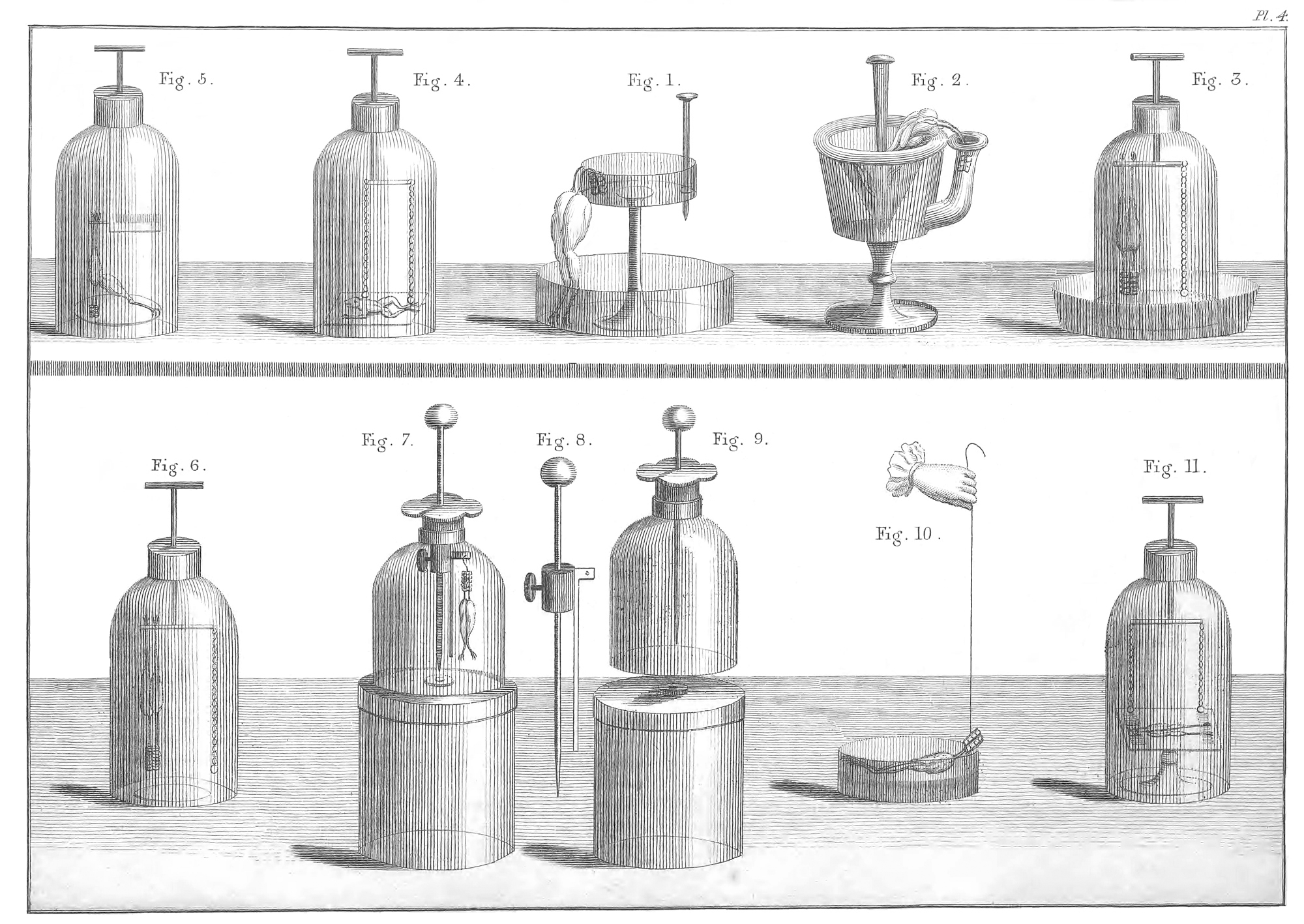 This experiment, in my opinion, affords a decisive proof that the Galvanic fluid is peculiar to the animal machine, independently of the influence of metals, or of any other Pg 7 foreign cause. In these experiments, indeed, we have some animal machines, so combined that the result is strong contractions in the frog. All the bodies were insulated; and, therefore, it cannot be supposed that the contractions were occasioned by the direct influence of that general principle, which pervades every body in nature. Hence it is evident, whether it be ascribed to the action of the animal chain, formed by the arms of the persons, or to the animal pile, formed by the trunk of the calf, that we shall still be obliged to acknowledge the action of a principle which belongs to the organization of the animal machine, without having any dependence on metals.