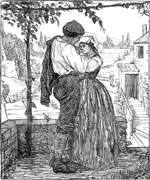 The choice of representative illustrations has been most perplexing. Some twenty years' intimacy with most of the books and magazines mentioned herein made it still less easy to decide upon their abstract merits. Personal prejudice—unconscious, and therefore the more subtle—is sure to have influenced the selection; sometimes, perhaps, by choosing old favourites which others regard as second-rate, and again by too reticent approval of those most appreciated personally, from a fear lest the partiality should be sentimental rather than critical. But, and it is as well to make the confession at once, many have been excluded for matters quite unconnected with their art. Judging from the comments of the average person who is mildly interested in the English illustrations of the past, his sympathy vanishes at once if the costumes depicted are 'old-fashioned.' Whilst I have been working on these books, if a visitor called, and turned over their pages, unless he chanced to be an artist by profession as well as by temperament, the spoon-bill bonnet and the male 'turban' of the 'sixties' merely provoked ridicule. As my object is to reawaken interest in work familiar enough to artists, but neglected at present by very many people, it seems wiser not to set things before them which would only irritate. Again, it is difficult to be impartial concerning the beauty of old favourites; whether your mother or sister happen to be handsome is hardly a point of which you are a trustworthy judge. Other omissions are due to the right, incontestable if annoying, every other person possesses in common with oneself, 'to do what he likes with his own'; and certain publishers, acting on this principle, prefer that half-forgotten engravings should remain so.