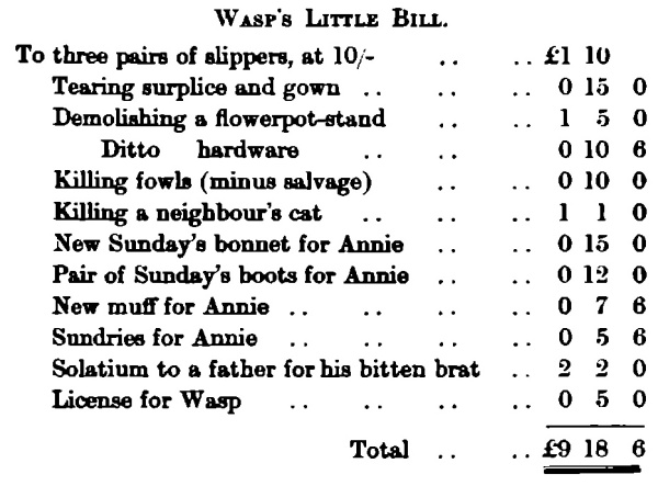 “To say nothing of a new carpet to be bought,” I said, “and oilcloth for the lobby, and seeds for the garden.”