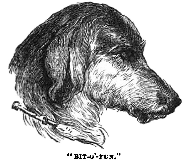 “Yes, Aileen, it was very good of you, I admit, to leave your fan and your romps, and come and lay your dear kindly head on my lap. The other dogs prefer to play. Even ‘Theodore Nero,’ your husband, is tumbling on the ground on that broad back of his, with his four immense legs pointing skywards, and his whole body convulsed with merriment. The three collies are in chase of a hare, the occasional excited yelp that is borne along on the breeze can tell us that; we pray they may not meet the keeper. The Dandie Dinmont is hidden away in the dark depths of a rabbit burrow, and the two wiry wee Scotch terriers are eagerly watching the hole ’gainst the rabbit bolts.