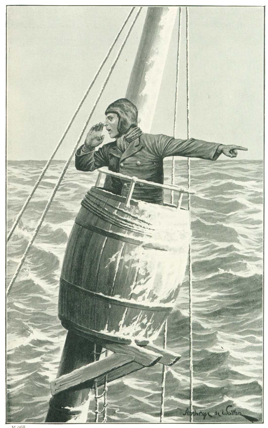 To-day he would not wait the conclusion of dinner, but, with his telescope strapped across his shoulder, he had scrambled right up to the crow’s-nest itself, to have one look round before the sun went down again.