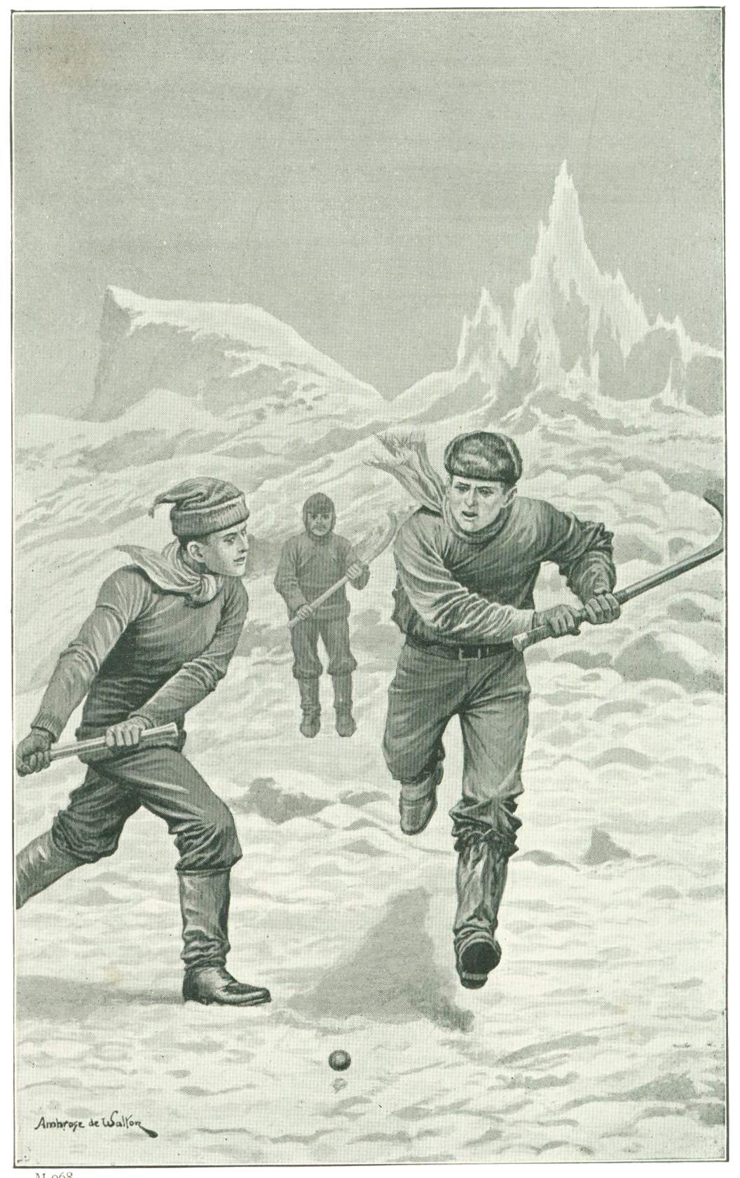 Two huge black Newfoundlands, Nora and Nick, have found their way down off the ship, and now come rushing to meet him, making the icy rocks and hills around the bay ring back their joyous barking.