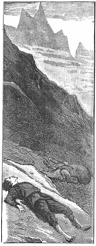 No, no; for look, yonder is his horse at the foot of the cliff—dead.