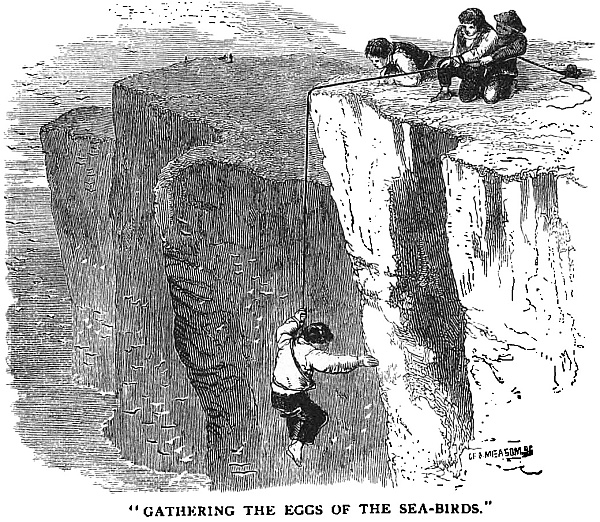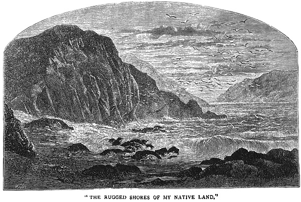 Both Dugald and his young wife jumped up from their seats beside the fire, and welcomed Kenneth, and their only boy, a wonderful little fellow of some nine or ten summers old, with hair not unlike in colour to a bundle of oaten straw, got out of bed and ran to pull Kenneth by the jacket, without waiting to dress.