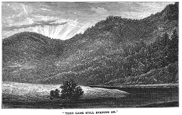 Then came an evening when Kenneth, Archie, and Jessie were strolling together on the banks of the loch. It was to be the last night in Scotland of the two American farmers, as they called themselves, and she could not refuse to go with them to see the sun set behind the mountains.