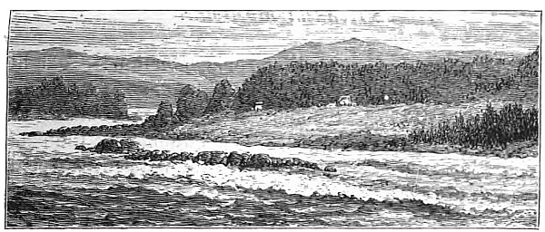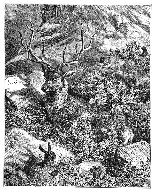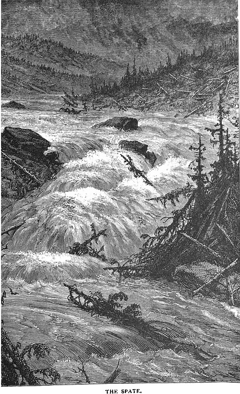 “Heigho! another lammie dead!” The boy was alone now; the faithful dog had departed at once on his mission. In a bee-line down the mountain’s side went he, feathering along through the grass and the patches of blooming heather, jumping over boulders, and springing down from rocky ledges with a daring that would assuredly have proved fatal to any other kind of dog, save a Highland collie or a Scottish deerhound. Finally he went splashing through a broad though shallow river, and immediately after disappeared in a clump of those sweet-scented birch trees that grow so plentifully in “the land of the mountain and flood.”